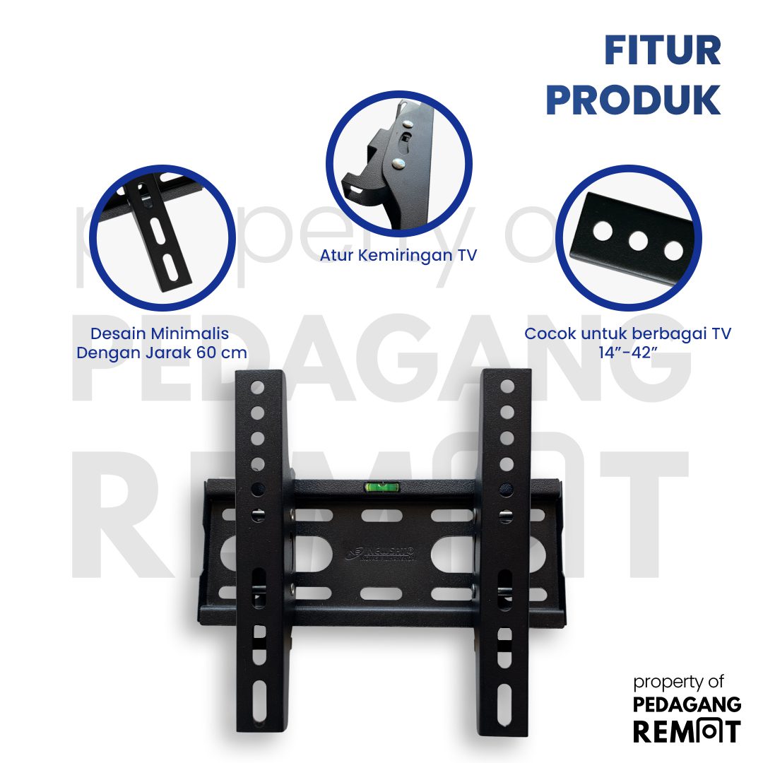 Nama Produk: Braket Bracket TV LED LCD Android SmartTV Universal 14 – 42Inch (14″, 17″, 19″, 24″, 32″, 42″) BTH-982