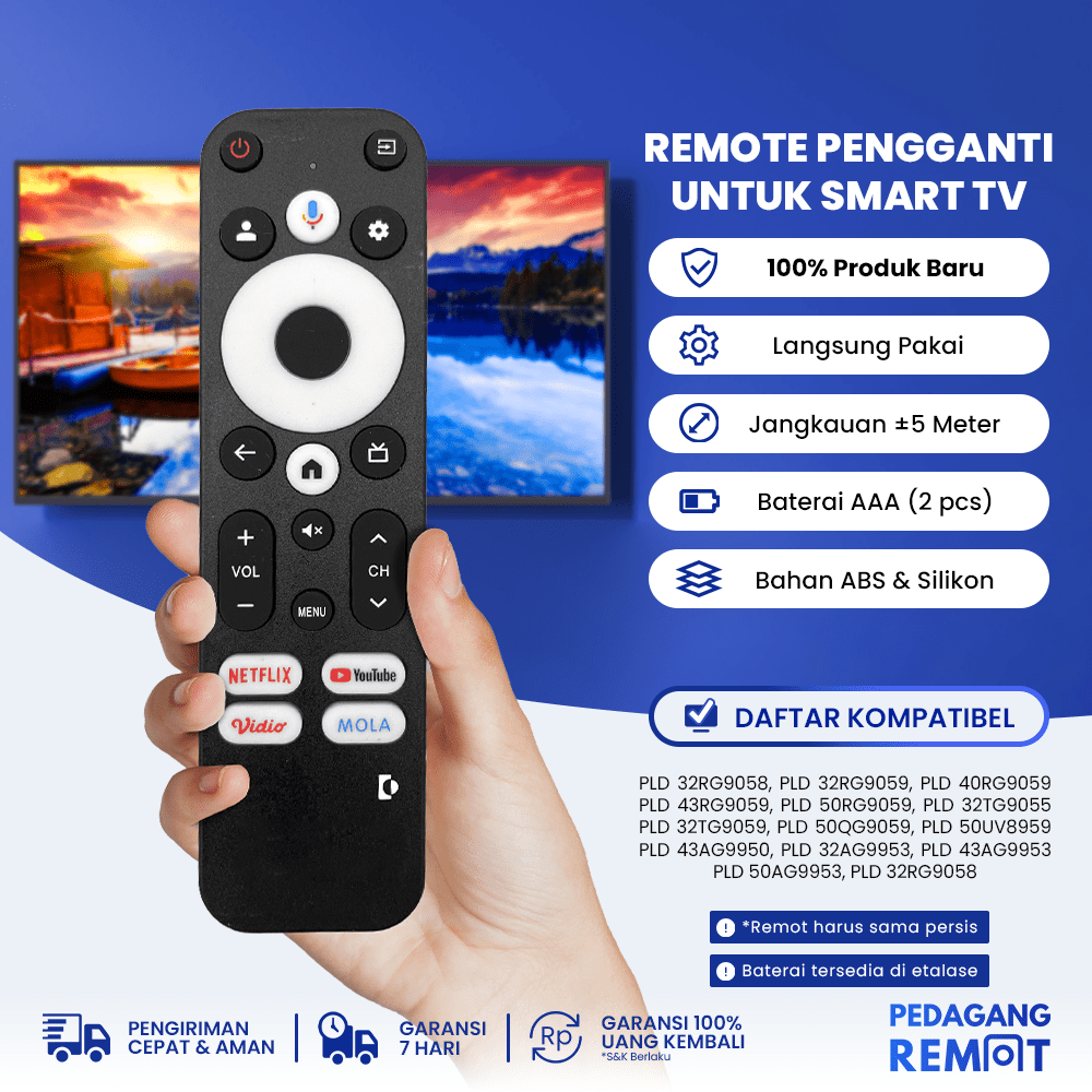 Nama Produk: Remot Remote TV Polytron LCD LED Android Smart TV 81J367 PLD 32RG9058 PLD 32RG9059 PLD 40RG9059